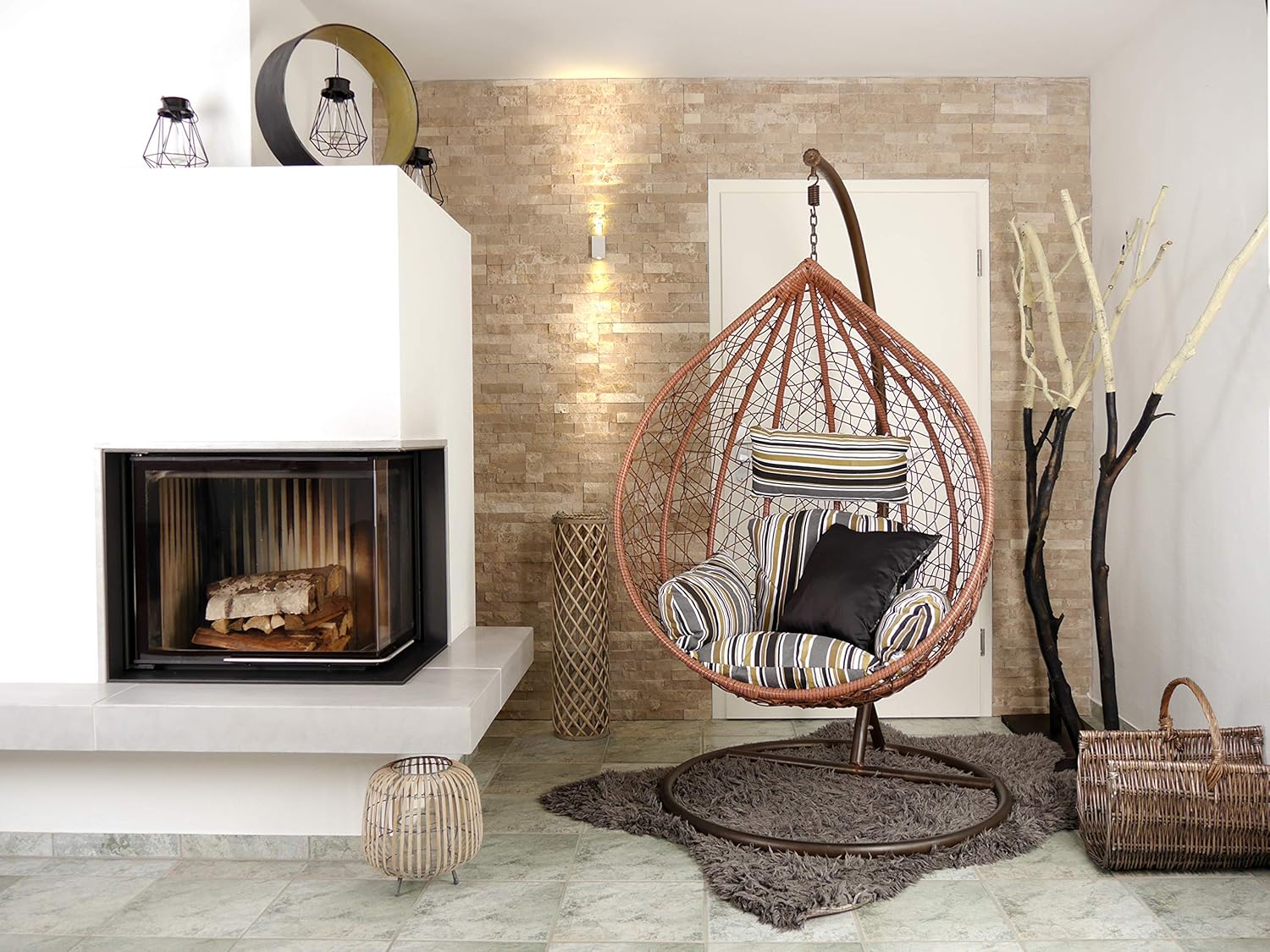 Robuste Rattan-Konstruktion Der Hängesesselkorb besteht aus stabilem Rattan und überzeugt durch seine langlebige und belastbare Bauweise. Das hochwertige Material sorgt für Stabilität und eine attraktive natürliche Optik, die sich harmonisch in verschiedene Wohn- und Outdoorbereiche einfügt.